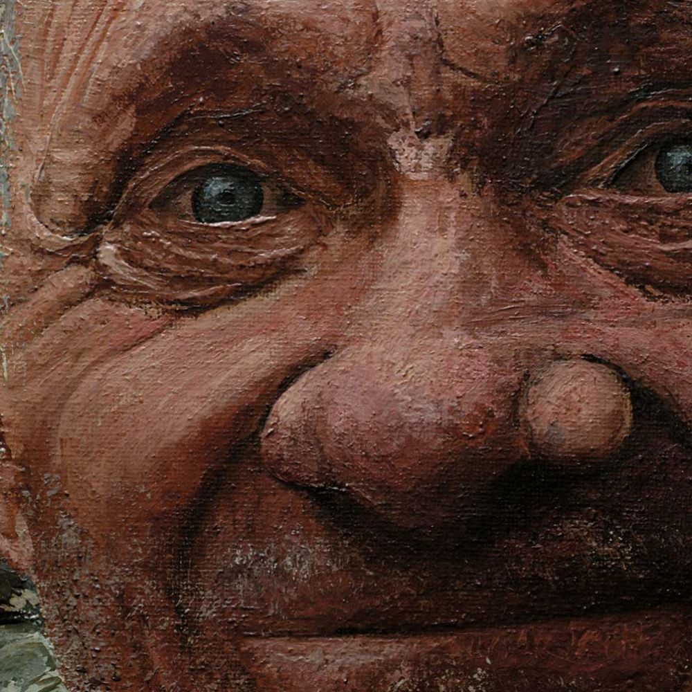 Questo personaggio, emblema della vita che continua, viveva tra vecchi ruderi in una collina dell'Appennino. Lo incontrai varcando la porta di una casa in pietra che pareva abbandonata. Col corpo segnato da una leggera paresi, mi mostrò, in una sorta di vecchio fienile semi diroccato, una moltitudine di rotoli di filo, pali e vernice, spiegandomi che avrebbe creato un allevamento di bestiame.