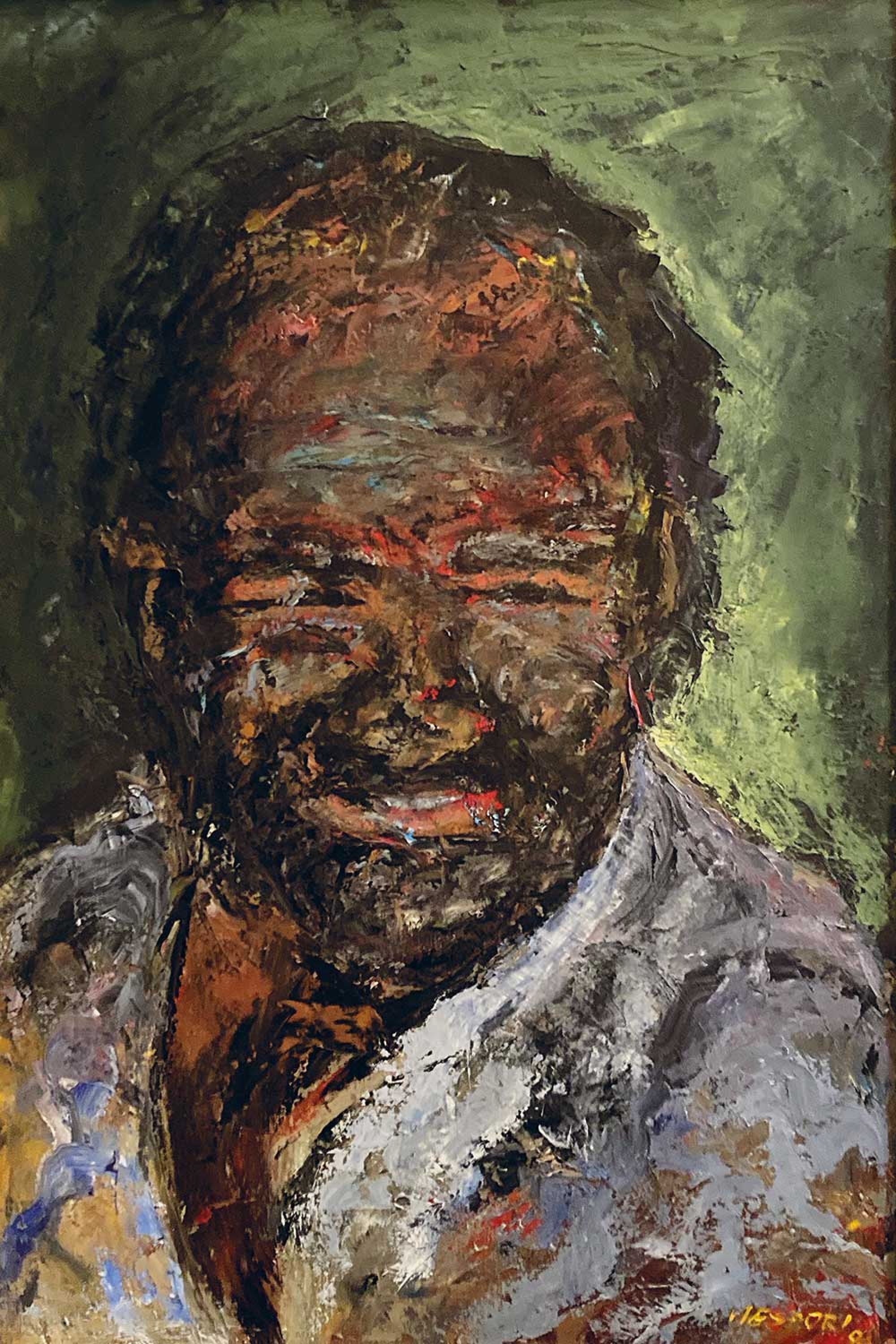 Il ritratto è molto più realistico di quanto appare, è che sul viso aveva sovrapposti strati di carbone, cenere, polvere e sudore. Erano due personaggi che vivevano sull'atollo corallino di un arcipelago cubano, un tornado aveva creato un cimitero di mangrovie che loro trasformavano in carbone per rifornire i pescherecci. Uno era un allegrone, sempre sorridente, l'altro invece doveva avere parecchi pensieri. Nel ritratto figura l'allegrone.
